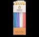 A pack of 12 pure beeswax Gala candles in fresh Honey Candles® Pastel colours (3 each Glacier Teal, Spring Crocus (purple), Pearl and Paris Pink). You'll love how Honey Candles® Gala candles dress up your affair.